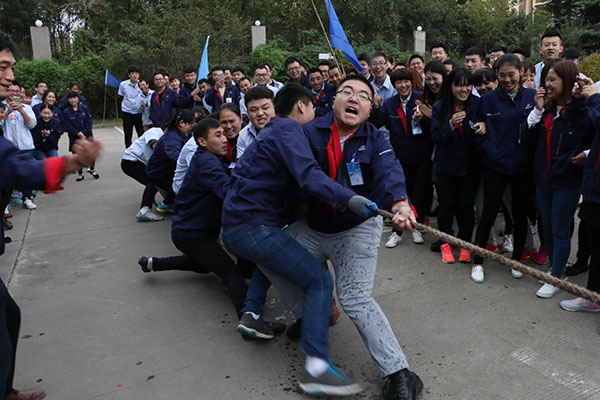本次運動會共設(shè)拔河、乒乓球接力、跳繩、二人三足、足式保齡球、自行車慢騎等6 個項目,隊員們在比賽中展現(xiàn)了個人風(fēng)采,努力為集體爭取榮譽,經(jīng)過4 天的激烈角逐,各個項目均產(chǎn)生一、二、三等獎,其中拔河比賽由匯流環(huán)+ 后勤保障部門一舉奪冠,后勤部門、研究設(shè)計院分獲二、三名。比賽中,個別隊員的手起了泡,沒有人在意,正是這頑強拼搏的精神鑄就了海納電子旺盛的生命力。